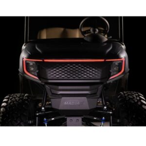 Engineered to seamlessly integrate with the E-Z-GO RXV, the Apex is designed to exceed standards and break the mold. Staying true to the innovative MadJax spirit, the Apex body stands out with its rugged styling, cutting-edge technology, and modular set up. Top-tier lighting is integrated into the design as vibrant, sequencing colors travel along the cowl.